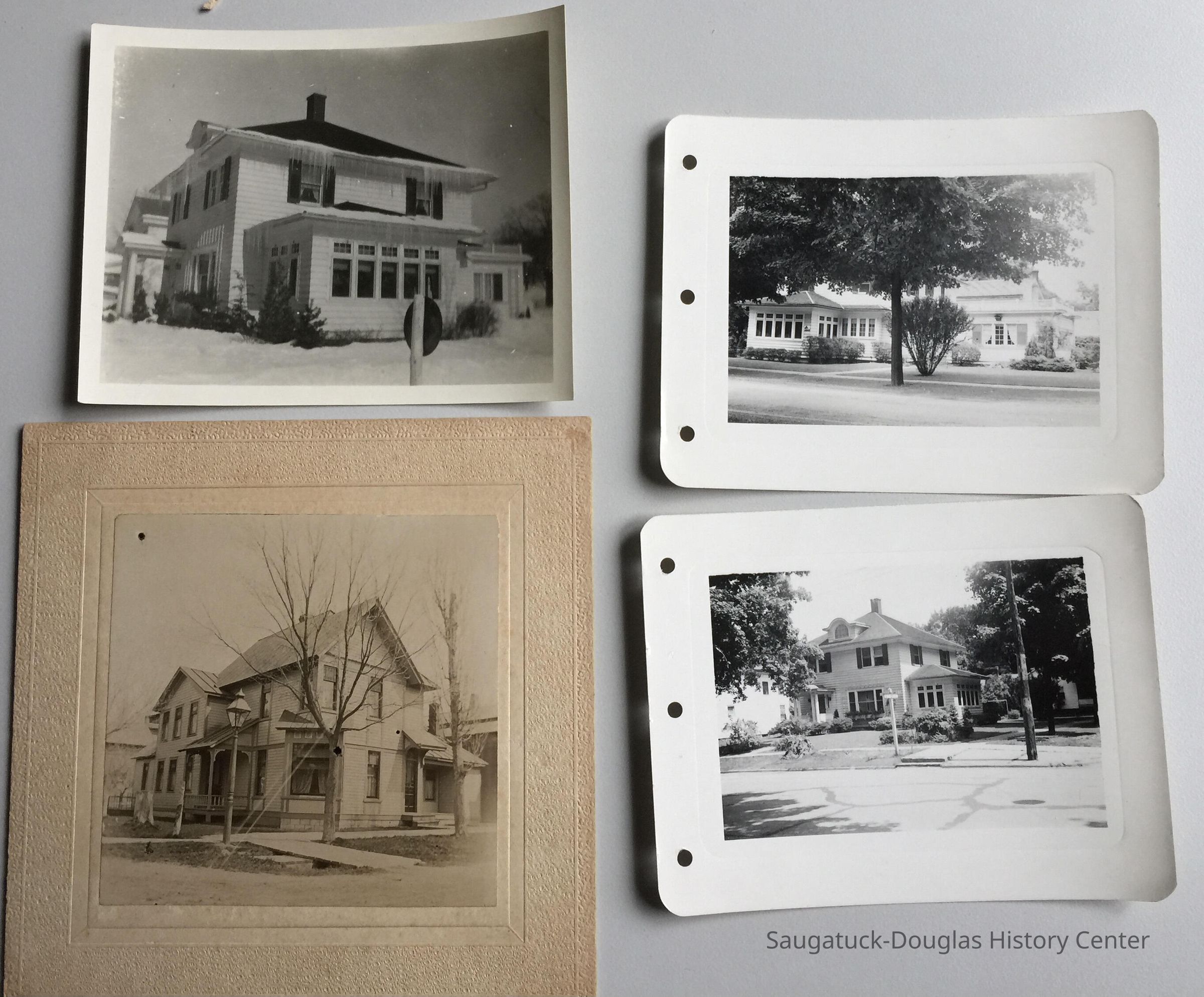3-4. Two 2.25x3" prints on rounded-corner paper with three holes on the left edge of the Ira Koning-Wiley house at 507 Butler Street, built circa 1922.