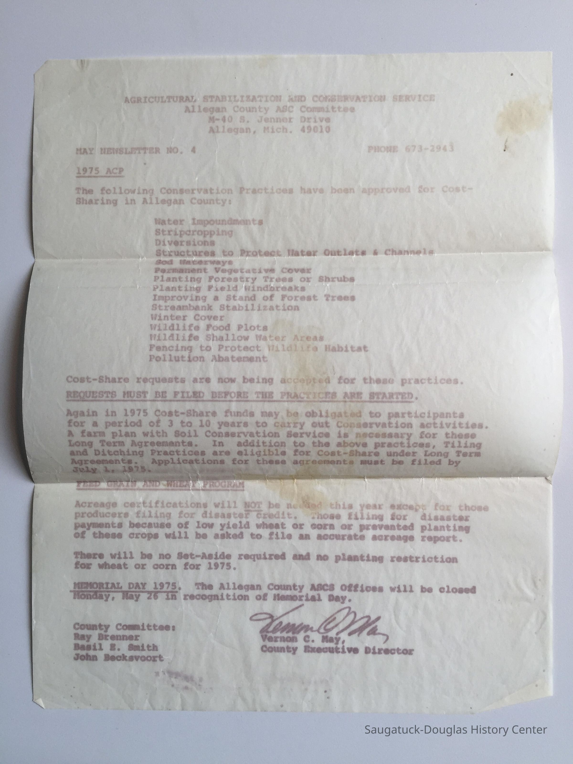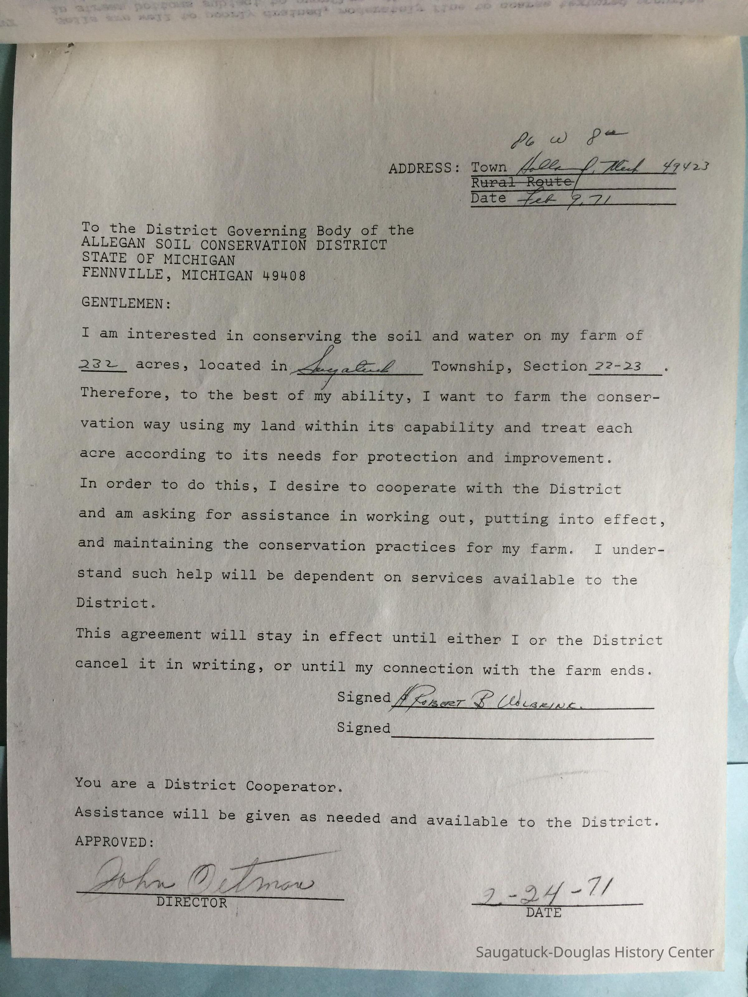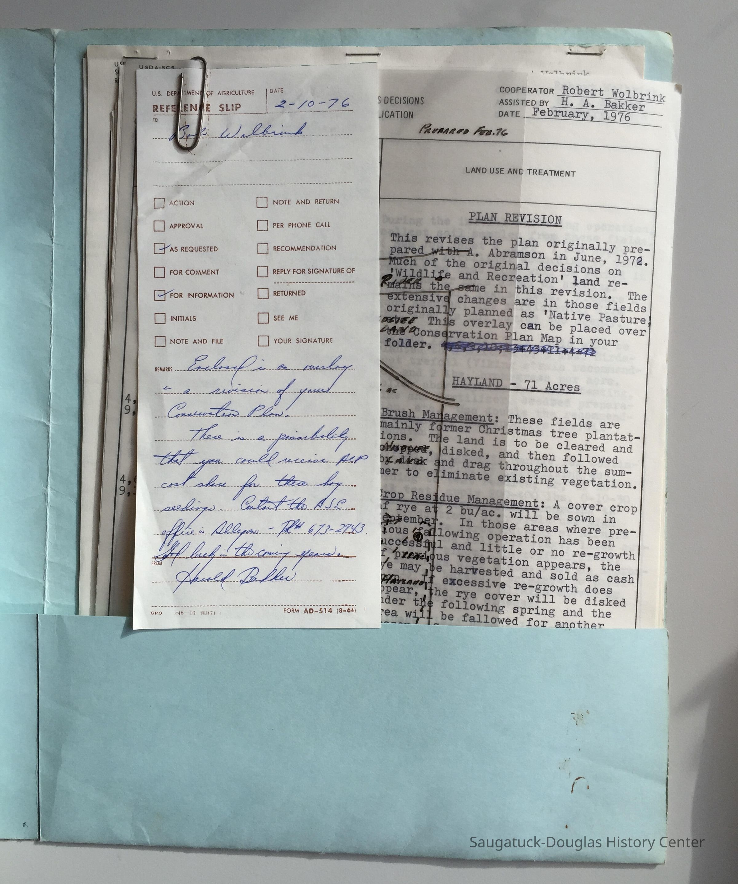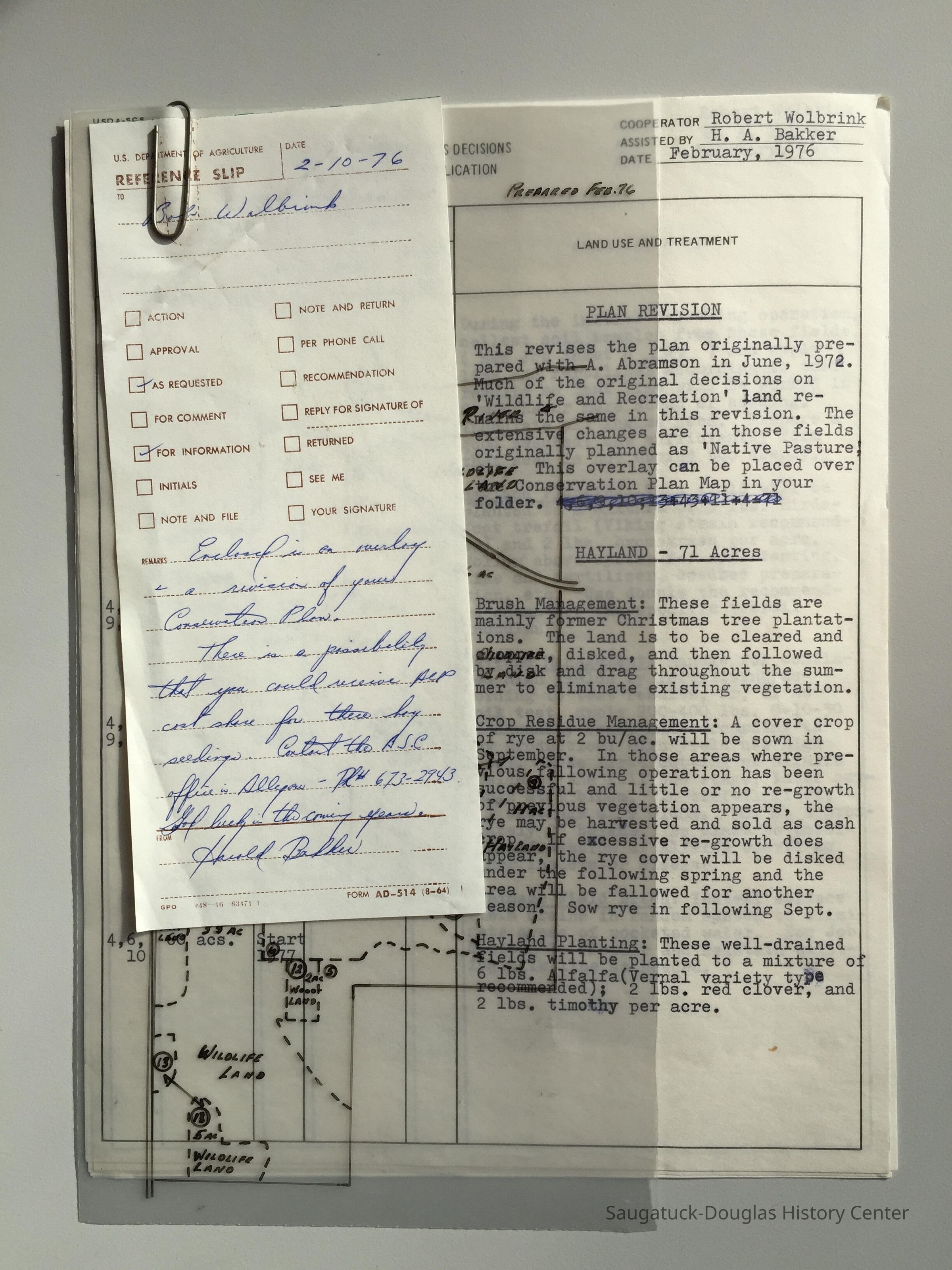Provided by the Allegan Soil Conservation District out of Fennville, Michigan, to Robert B. Wolbrink in the 1970s.