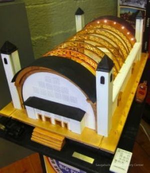 1/8th scale wooden model of Big Pavilion with integrated lights. No roof so you can look through the roofing struts to see the dance floor. Built by Arnold "Arnie" Shafer.