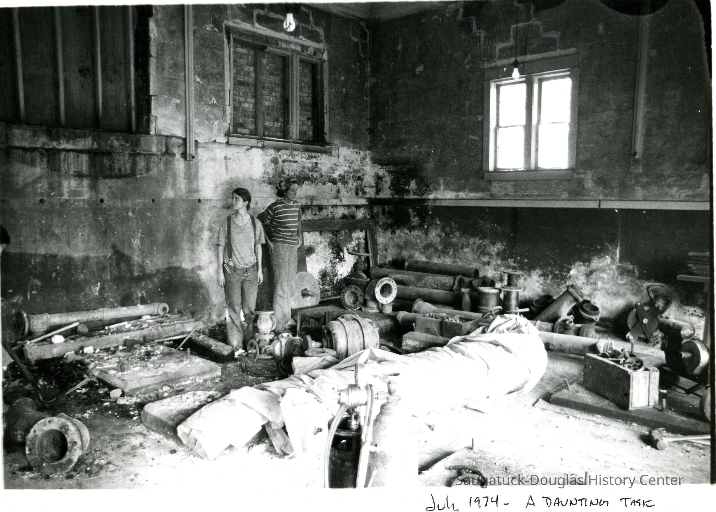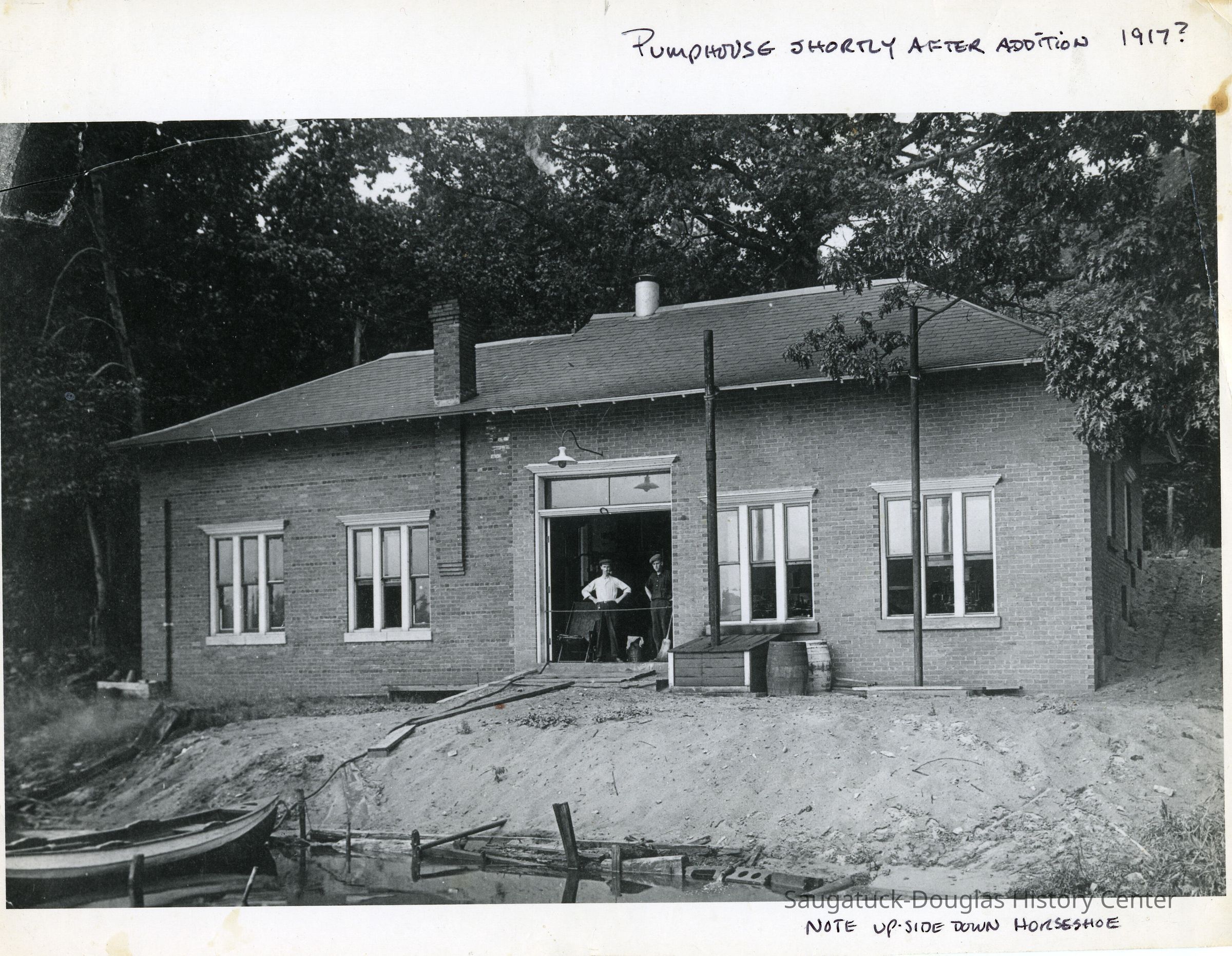 THE PUMP HOUSE As the saying goes, the pump house has had a “good run” in local history. First designed and built just after the turn of the century, it helped bring running water and fire hydrants to the village. The water delivery system was designed by local engineer Harry Bird. On the north shoulder of Mt. Baldhead, 190 feet above the village level, a 100,000 gallon brick and concrete reservoir was constructed. In the shadow of the big dune, pumps in the building lifted water from wells to the reservoir where gravity took over and enabled the pressurization of the village system. What a day that must have been--real indoor running water and no more fire-fighting barrels of water on mill roof tops! The pump house was designed by John Alvord a summer resident of Douglas, who also just happened to be a primary designer of nothing less than the city of Chicago water system. In addition, Mr. Alvord was one of the movers and shakers who created the Shorewood lakeshore community. Just south of Shorewood, the Alvord cottage is an admired piece of architecture. The pump house design is of the “prairie craftsman” school – it has an wide-eaved roof, walls of red brick and tall narrow windows looking out to the river. By 1910, the village populace - thrilled with running water- now eyed the benefits of electricity. The pump house size was doubled and generators installed to bring to Saugatuck its first (and last) power generation station. Within ten years more efficient power plants took over and the water pumps were moved to the other side of the river. Decades passed, the pump house became a storage shed for the public works department, then fell into disrepair and was scheduled for the bulldozer. No way. That is a “diamond in the rough” thought Dr. William Shorey and his wife Sally. The Shorey family of Chicago, knew the building well from summers in Saugatuck at Oxbow Ox-Bow. Lucky for all of us they had a bright and history saving idea. Would the village lease the building for a summer cottage in return for its restoration? A deal was struck with the Village and the Shorey family launched their personal pump house restoration effort. Some twenty years later – when the Shorey lease ended – the building was again leased, this time to the Saugatuck-Douglas Historical Society. The Society and many generous donors have since invested copious amounts of sweat equity and nearly $150,000 in turning the 103 year old building and grounds into a proud and award-winning museum facility. Come over and take a look! By Jack Sheridan