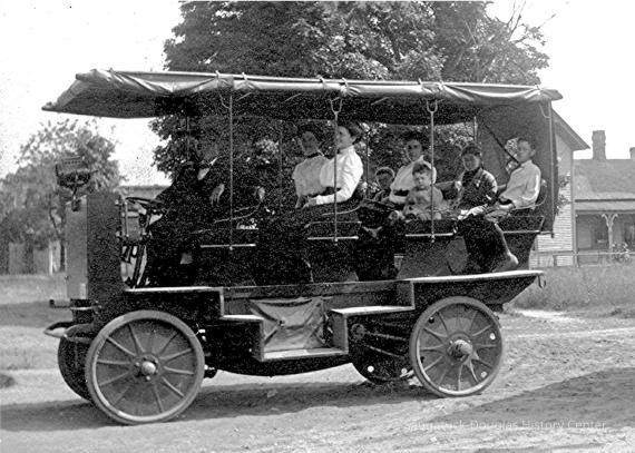 This image was featured as History Mystery #81 with the solution: This 1910 taxi-bus carried tourists to and from resort hotels and beaches. The bus was powered with rechargeable batteries.