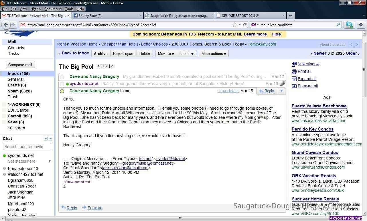 Digital information about the Marriott family including Dale Marriott Williamson and Mel Hershaw interview, photos, newspaper clippings and research compiled by Chris Yoder plus Yoder's SDHS newletter insert article about Robert Marriott and the Big Pool.