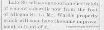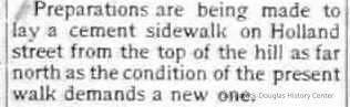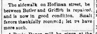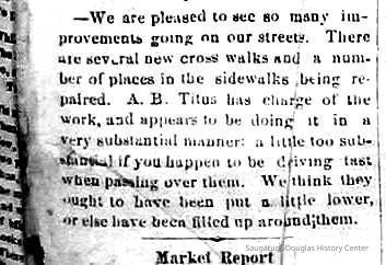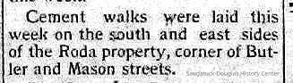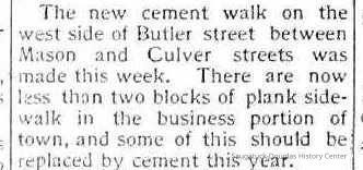 Knowing what year a sidewalk was first laid is helpful for dating old photographs and tracks the development of the town.
