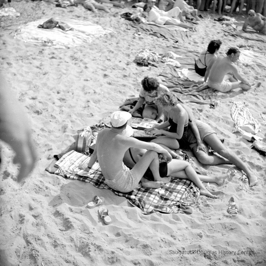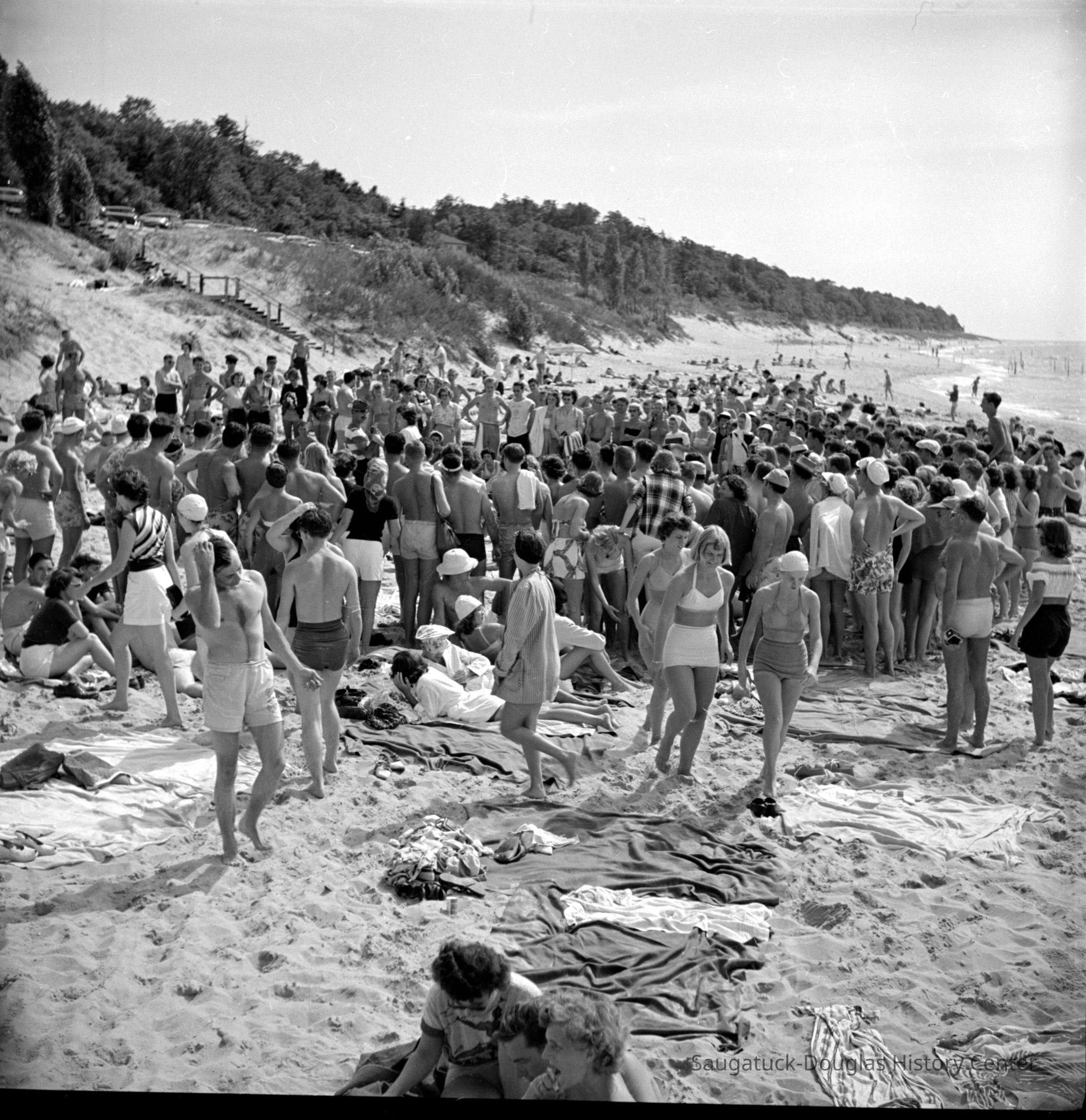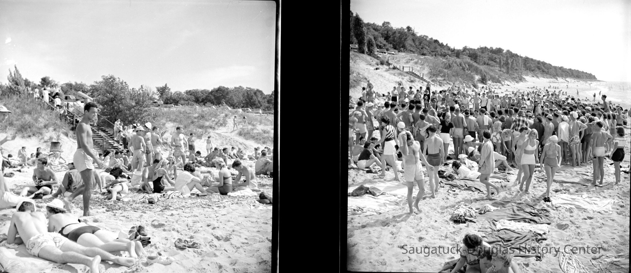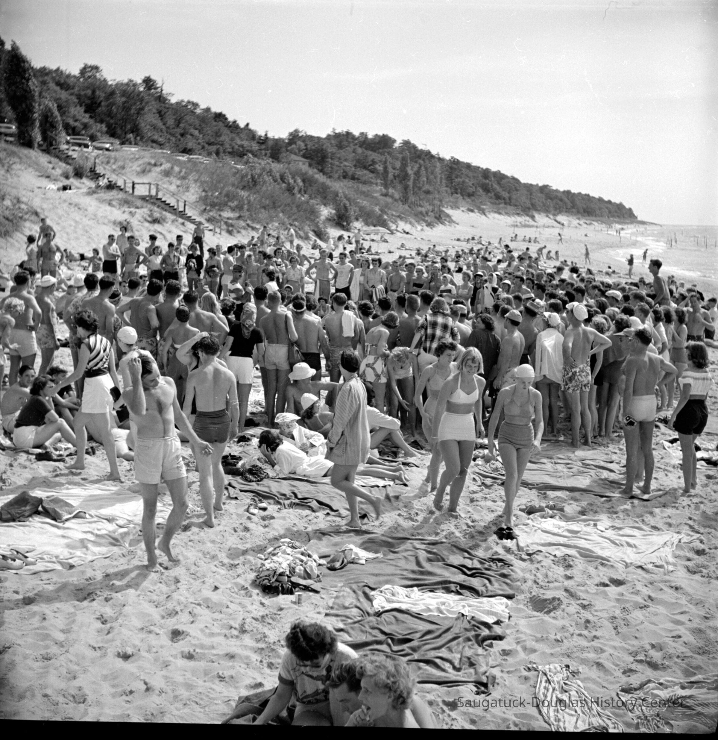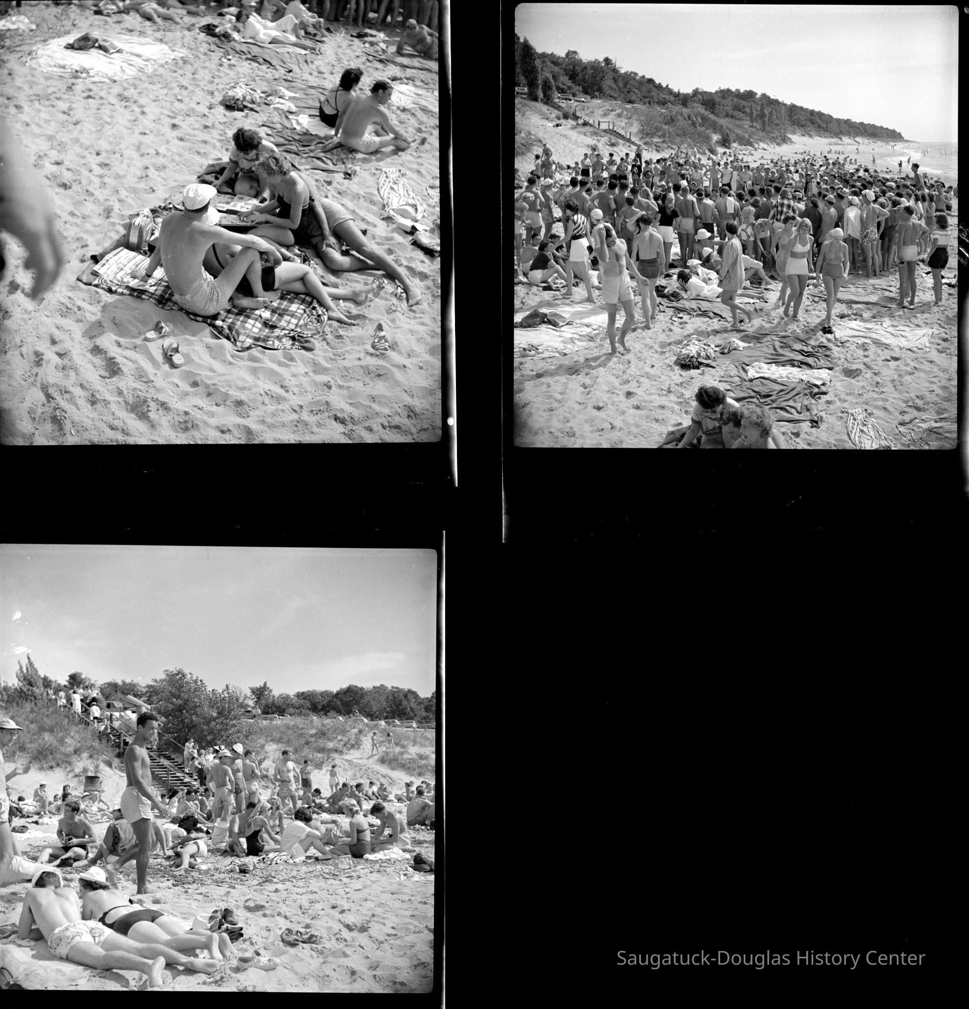 4 3/3 Saugatuck - Beach 9/1949 Crowded with people