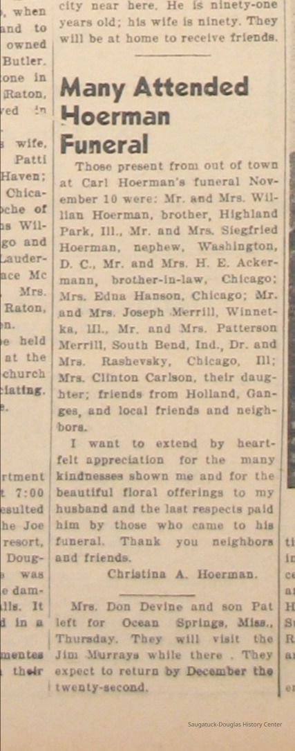 Hoerman, Carl 1885-1955Hoerman, Christiana A.Chalet Studio and Art GalleryDykstra Funeral HomeKemah Cottage b.1906-