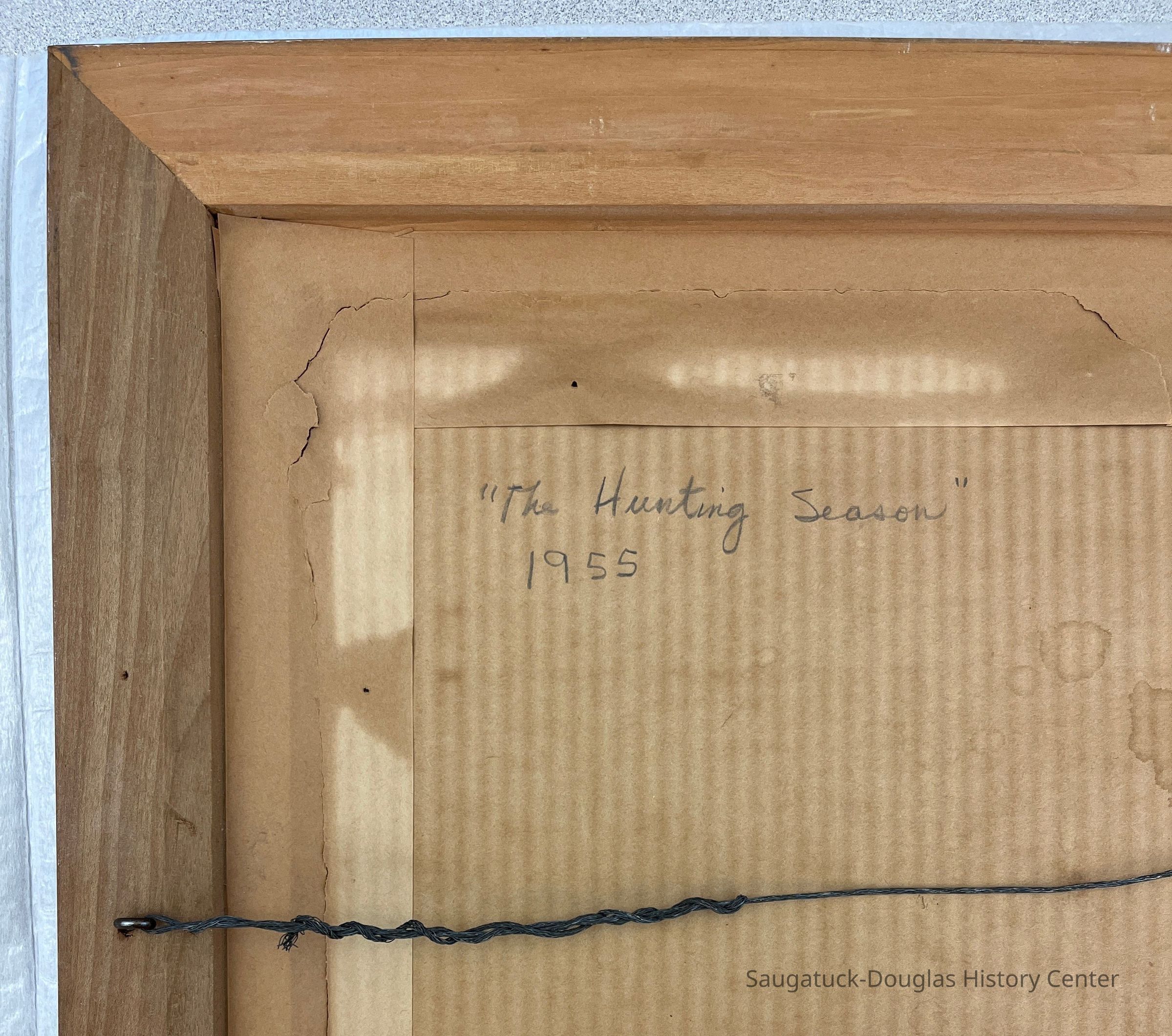 On the back of the frame, "The Hunting Season" and "1955" are written in pencil.