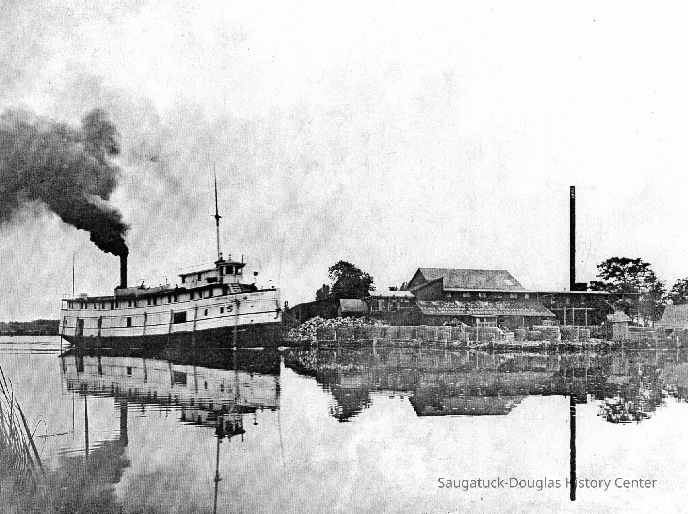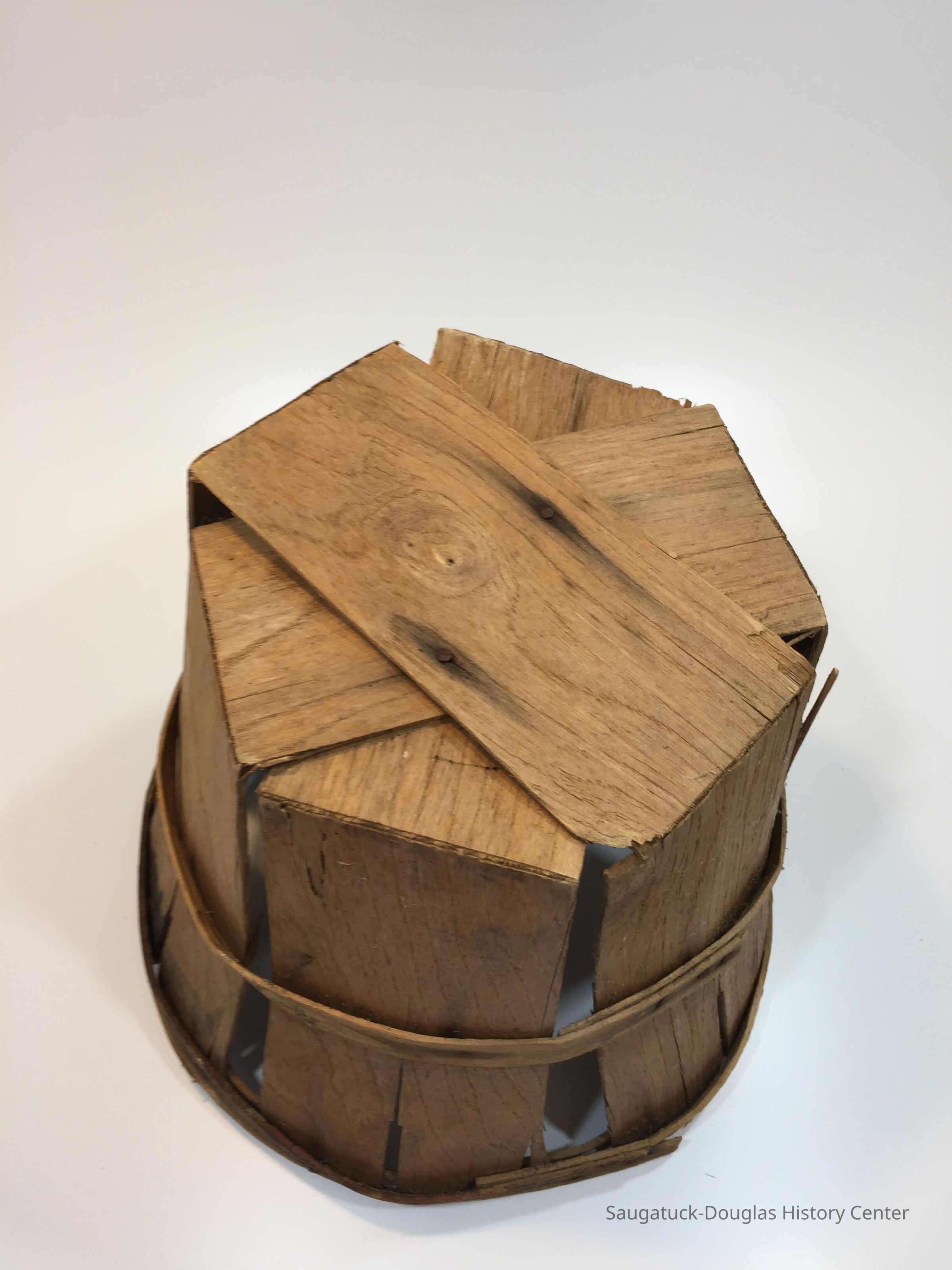 https://sdhistoricalsociety.org/publications/NLHist/NLHist/P398-401.php The Douglas Basket Factory By Retha Haan (In the early 1960s Douglas resident and teacher, Retha Haan, interviewed Mrs. Elmer E. Weed, Mrs. J. Everett Durham, William Devine, Fred Schultz and Mrs. Wallace Williams and wrote this synopsis of a Douglas factory.) In Douglas, Michigan, back in the 1870s when the lumbering, tanning and boatbuilding industries which had made it a busy and thriving little village, were beginning to wane and the "Peach Era" was beginning to boom in southwestern Michigan, Captain Robert Reed, who had a large fruit farm on the shore of Lake Michigan at Douglas, started and operated a small basket factory at the foot of Tannery Hill on the Kalamazoo River. The operation was later moved to a new location, on a bend of the river, on the north side of Douglas. In 1 872 it was sold to William and Joshua Weed who enlarged it and it was called the "William Weed and Company Basket Factory." The first fruit package which the Weeds manufactured from a patent which they invented was known as the Wobble Crate, so called because of the crossed pieces, or wobble in the bottom of the square crate; which kept the four round, peck peach baskets in position in the crate. The baskets were made from veneer splints, nailed to a solid bottom and were kept in shape and made firm by hoops nailed around the top, center and bottom of the basket. Later, Joe Devine and Everett Durham invented a machine for sewing the hoops to the basket, in one operation with wire. This was a big money saver as it had cost 50 cents per hundred to nail hoops; but they could be sewed for 17 cents per hundred. Berry boxes and crates were also made. The boxes were made from two pieces of scored veneer. The scoring enabled the veneer to bend, shaping the box. At first they were nailed together, but later, probably after 1900, they also were sewed with wire. The first sewing machines were foot-operated, but later ones were power-operated. The first Climax baskets, which we know as grape baskets, were made by the Dickey factory in Douglas, which early went out of business and their machinery was moved to Cadillac. Later Climax baskets, in 5th and 6th bushel sizes were also manufactured in the Weed Basket Factory. One informant asserts that Roger Reed of Douglas made the patent for the bushel basket. Another asserts that he and Everett Durham invented the form far making the Jumbo basket, although they never received any financial benefit from their invention. Be that as it may, the factory did manufacture all of these types of baskets and berry crates and boxes, becoming one of the largest fruit package manufacturing plants in Michigan. During later years the local firm was connected with a factory in Lawton, supplying the baskets for the large Lawton and Paw Paw grape vineyards. When William Weed's son, Elmer, finished college, William turned his interest in the factory over to him and it was renamed "E. E. Weed and Company." About 1896, Frank Kirby, who was bookkeeper for the factory and also held an interest, died, and D. Milton Gerber took over his interest. James Wark also came in and a stock company was formed. William Tisdale and Everett Durham held working interests. When the stock company was formed the name of the factory was changed for the last time to "The Douglas Basket Factory." After 18 years in the factory, Elmer Weed withdrew and Mrs. Kirby took over some of his interest; although he continued to hold stock in the company until the factory burned. Mr. Work managed the plant for some years; then he became ill and William Devine took over Mr. Work's work as manager and was given $2,000 in stock. When the factory was owned by the Weeds, it never had a very reliable financial status. It required quite a lot of capital to operate and there was not much to be had. The work, because of its nature, was necessarily seasonal. A man earned about $1.50 per day for day labor. Piece workers could sometimes earn $3 or more per day. A single man received $5 of his wages each week in cash; a married man received $b. The workers were then given an order on the grocery store for the rest of their wages, which was paid up when the company collected for baskets at the end of the season. After Gerber and Wark took over, the factory was on a sound financial basis and workers received the entire amount of their wages by check each week. In the early days of the factory, when the baskets and crates had to be nailed by hand, nailing was considered a trade and 10 or 15 nailers were imported for the summer. They were rather rough individuals, heavy drinkers, and they followed the crop from place to place, very much the same as tramp coopers. They began about May 1 and worked until about October 1. About 25 or 30 women also worked at nailing. The factory continued to expand. About the time that Gerber and Wark became interested in the factory, they realized that the supply of local timber was nearly exhausted, so they bought 2,500 acres of timber along Swan Creek, near Allegan, and 2,500 acres along the Kalamazoo River. The logs were cut and piled on the banks of the Kalamazoo River in winter and floated and rafted to Douglas in spring and summer as needed. A raft of logs was on its way down the river when the factory burned. The work of cutting, trimming and scaling the lags, cutting the limbs into cordwood and piling same, kept a crew of 25 to 30 farmers and Indians busy in winter. Some of them then worked in the factory in the summer. The men received $2 per 1,000 feet for cutting logs and $1 per cord for 18-inch hardwood. The Indians and farmers did a good job. they felled and cut the logs to good advantage and cut and piled the wood honestly and straight. Beech and maple were used mostly for staves, elm for hoops, basswood and whitewood for berry boxes and soft maple was best for slats and covers for berry crates. The logs were sorted as to use befor