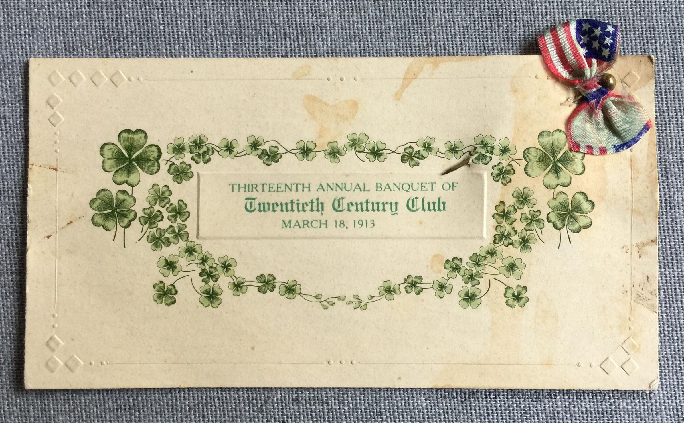 Cover text: Thirteenth Annual Banquet of the Twentieth Century Club March 18, 1913.