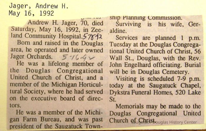 Jager, Andrew H. 1921-1992Jager, Henry J. 1883-1958Jager, Eva K. (Haberer) 1886-1978