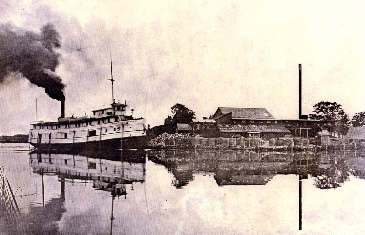 E. E. Weed & Company (also known as the Douglas Basket Factory) was Douglas’s largest manufacturer, and was the largest basket factory in Michigan. The workday there ended at 4:40 pm in order to allow workers to get in some fishing before sunset. This factory was the mainstay of the Douglas economy from the early 1900s through the 1920s. When the factory was destroyed by fire in 1927 the fire was so immense that it was said its glow could be seen as far away as Muskegon. The site is now the location of a residence and a small marina.