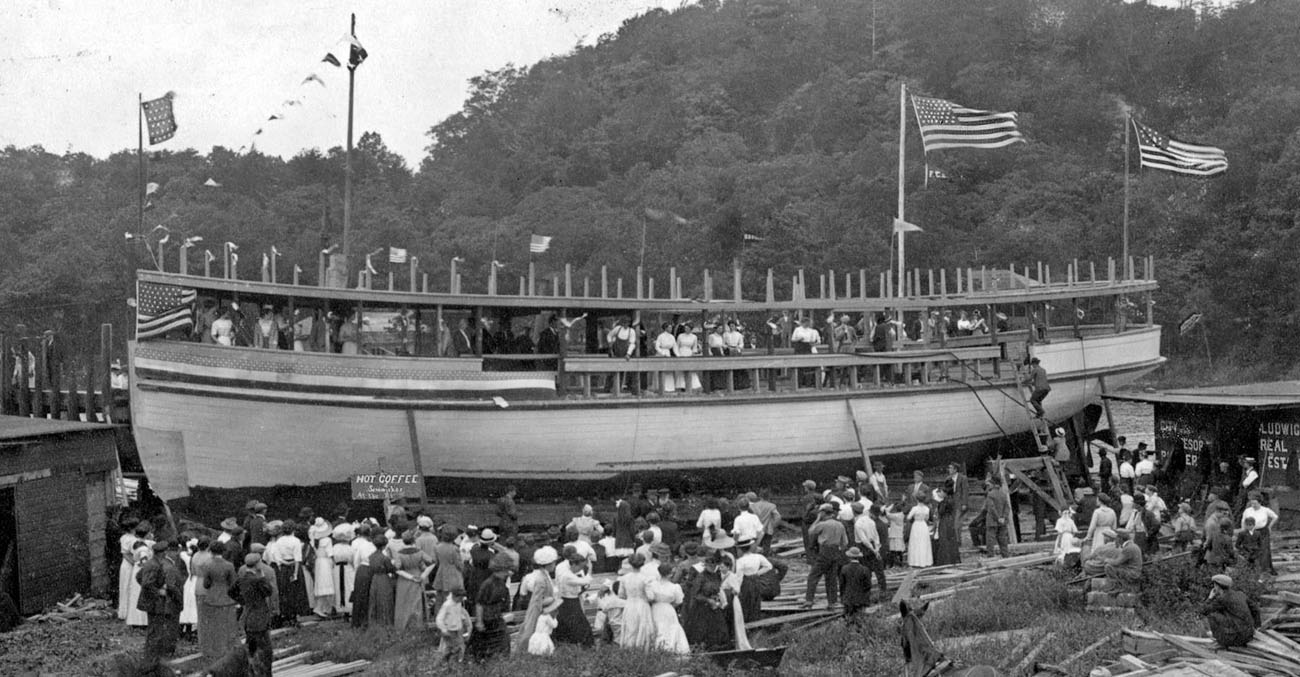 More than 1,000 vessels have been constructed at Saugatuck and Douglas. At one time it was observed that half the tugs in service on the Chicago River and in Milwaukee were built in Saugatuck. The riverbank has been the birthplace for plank river rafts, white oak schooners, tug boats, steam freight and passenger craft that were built before 1920, modern steel stern paddlewheel excursion boats, flat hulled river-going houseboats, sleek aluminum luxury yachts, fiberglass racing hulls, and exotic post-Cold War landing craft.