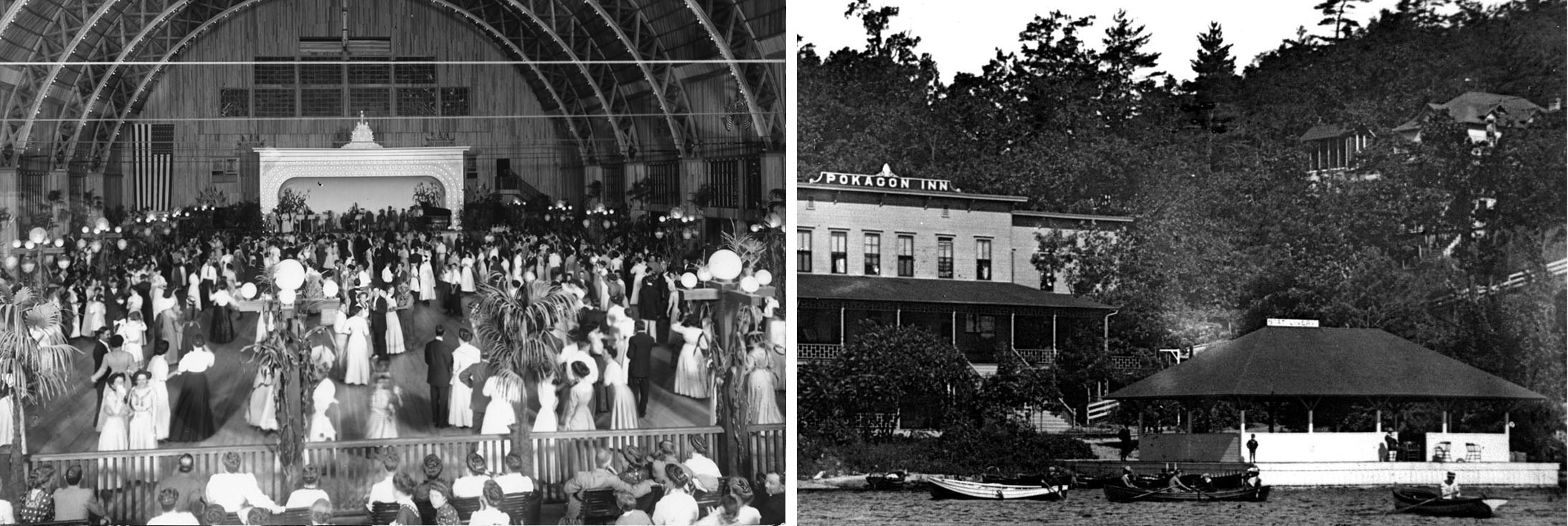 Saugatuck was one of the Midwest’s most visited places to dance—a phenomenon that was underway a decade or so even before the construction of the huge dance hall named the Big Pavilion. The East Shore Pavilion was the first large public dance pavilion, located at the site which is now Wicks Park. Most large resorts and hotels had dance floors of their own, such as the Pokagon Inn, Saugatuck’s first large hotel (built in 1899 and destroyed by fire in 1902), which advertised dancing in the water’s edge pavilion and dancing on the rooftop of the hotel.