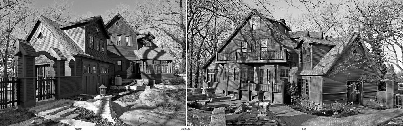 Kemah is an American Indian word meaning “in the teeth of the wind,” a fitting name for this large Arts & Crafts home high on the bluff, facing the winds of Lake Kalamazoo. The house began as a smaller 1906 cottage designed by the Chicago architect Thomas Eddy Tallmadge. It was then expanded in the mid-1920s by the artist-architect Carl Hoerman for Alys Springer, whose husband William was a member of the Chicago Board of Trade. It is one of the finest Arts & Crafts summer homes in Michigan. Some of its features include stained glass windows in the Prairie Style, a rolled “Cotswold” roof, hand-carved doors, and a rathskeller and cavern.